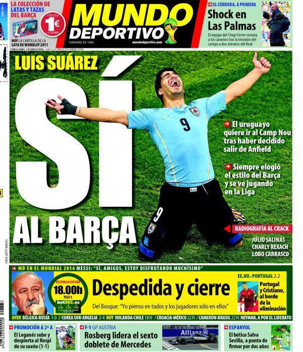 Η El Mundo Deportivo στο πρωτοσέλιδό της ασχολείται με το μεγάλο “ναι” που φέρεται σύμφωνα με το ρεπορτάζ της να έχει πει ο Λουίς Σουάρες στη Μπαρτσελόνα.