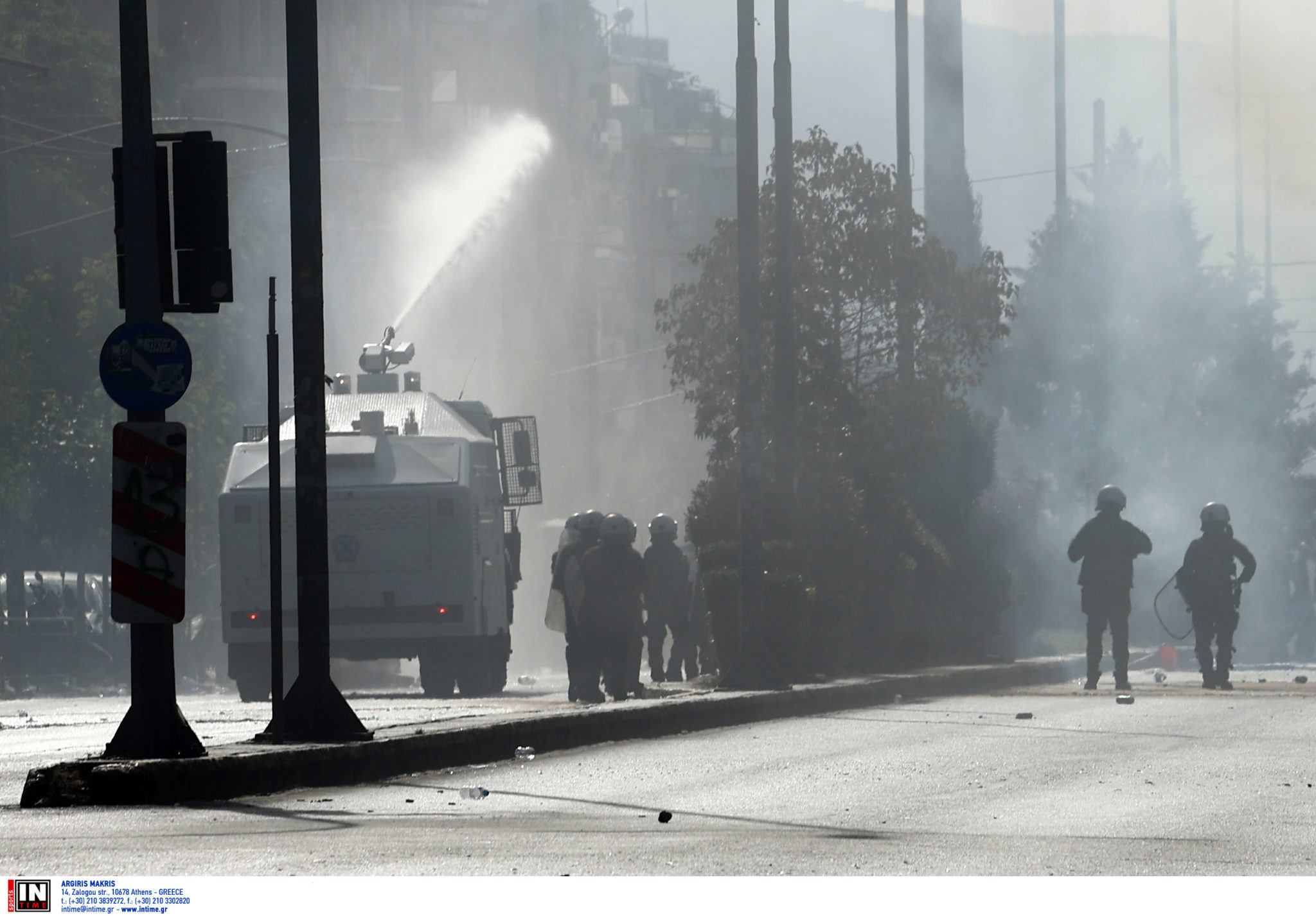 Σύμφωνα με την ΕΡΤ, οι αστυνομικές δυνάμεις απώθησαν τους διαδηλωτές προς το πεδίον του Άρεως με χειροβομβίδες κρότου λάμψης, ενώ προχώρησαν σε 10 προσαγωγές.