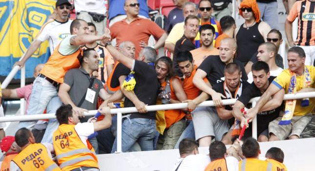 Από νωρίς μύριζε… μπαρούτι το παιχνίδι του ΑΠΟΕΛ με την Βαρντάρ λόγω των εθνικών ιδιαιτεροτήτων που υπάρχουν σε αυτό το ζευγάρι. Έτσι, αφού μερίδα οπαδών των γηπεδούχων πέρασε από το ξενοδοχείο που βρίσκονταν οι 150 φίλοι του ΑΠΟΕΛ και έκαναν επεισόδια, η ένταση μεταφέρθηκε στις εξέδρες του γηπέδου.