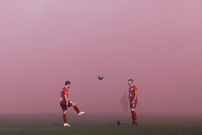 Η ατμόσφαιρα έγινε ακόμα πιο βαριά, όταν οι οπαδοί της γηπεδούχου Προοδευτικής άναψαν δεκάδες καπνογόνα, με αποτέλεσμα ο διαιτητής να στείλει τις δύο ομάδες στα αποδυτήρια και το ματς να ξεκινήσει με 20λεπτη καθυστέρηση, μέχρις ότου καθαρίσει η ατμόσφαιρα.