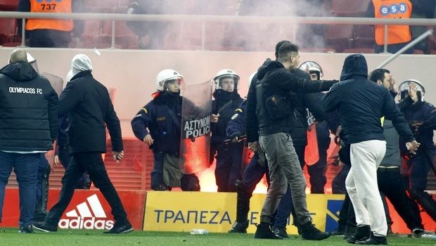 Οπαδοί του Ολυμπιακού εισέβαλαν στον αγωνιστικό χώρο του «Γ. Καραϊσκάκης» μετά τη λήξη του αγώνα κόντρα στην ΑΕΚ και συγκρούστηκαν με τις δυνάμεις των ΜΑΤ, που έκαναν χρήση δακρυγόνων.