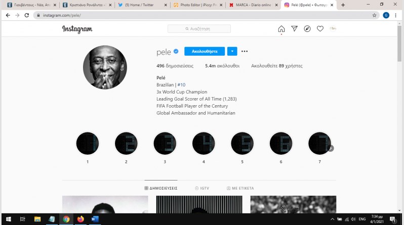 Ωστόσο, φαίνεται ότι ο Πελέ δεν αποδέχτηκε αυτή την… προσπέραση του Πορτογάλου σούπερ σταρ και έσπευσε να το επιδείξει με κάπως γραφικό τρόπο στον λογαριασμό του στο Instagram. Εκεί, στο Bio, τοποθέτησε το εξής “Κορυφαίος σκόρερ όλων των εποχών (1.283 γκολ)”.