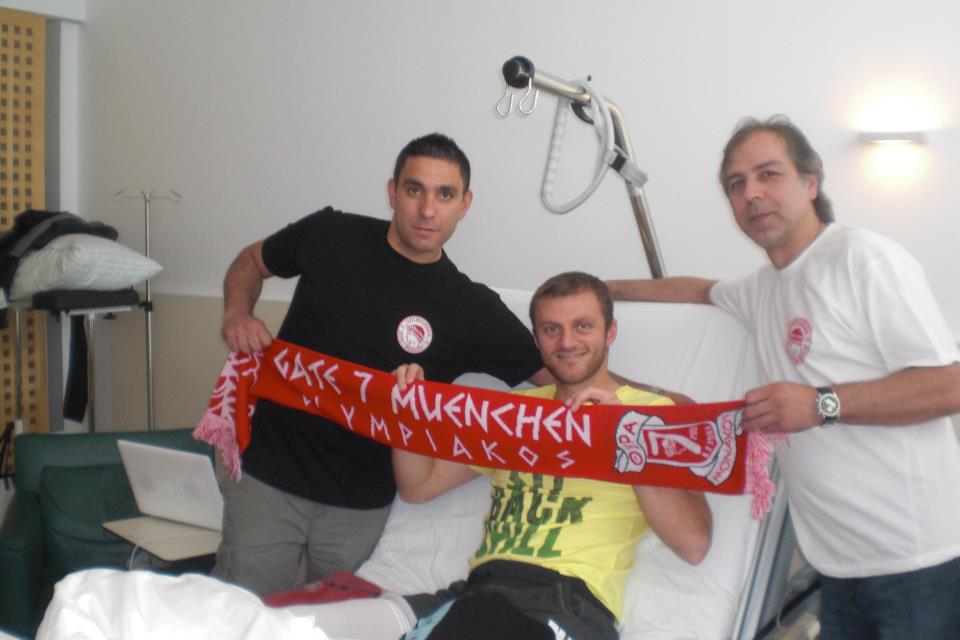 Τον μεγάλο άτυχο του Euro, τον Αβραάμ Παπαδόπουλο επισκέφθηκαν στο νοσοκομείο όπου νοσηλεύεται στη Γερμανία, μέλη της θύρας 7 Μονάχου.Ο Αβραάμ υπέστη ολική ρήξη χιαστών στην πρεμιέρα της διοργάνωσης και θα μείνει εκτός αγωνιστικής δράσης τουλάχιστον για πέντε μήνες.
