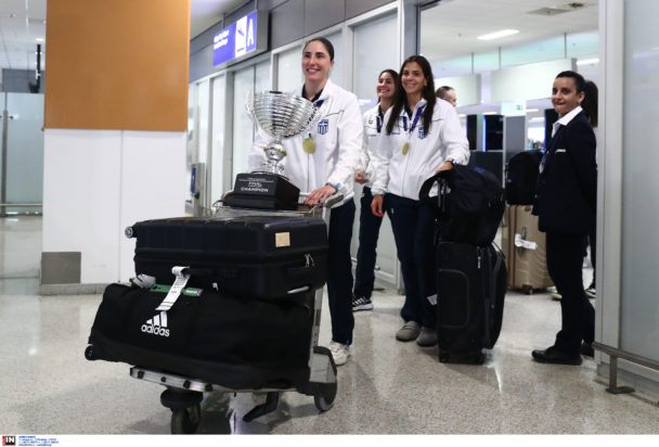 Οι αθλήτριες, γεμάτες χαμόγελα και περηφάνια για την τεράστια επιτυχία τους, έγιναν δεκτές μέσα σε κλίμα γιορτής.