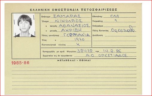 Το 1ο Αθλητικό Δελτίο του σπουδαίου αθλητή και αδικοχαμένου Νίκου Σαμαρά. – πηγή: FB page “Γειτονιές & Αναμνήσεις της Αλεξανδρούπολης (που αλλάζει..)”