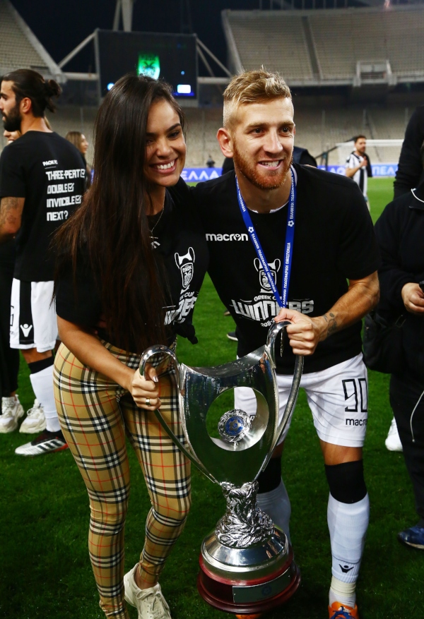 Οι παίκτες των νταμπλούχων πανηγύρισαν μαζί με τις συντρόφους τους, οι οποίες φωτογραφήθηκαν με το Κύπελλο