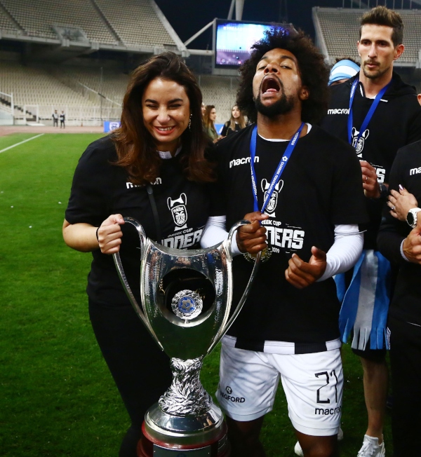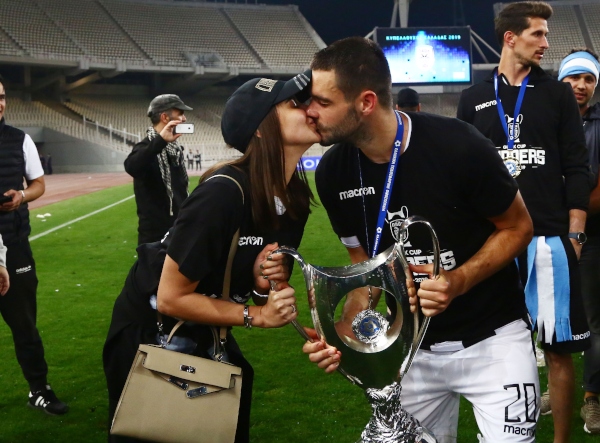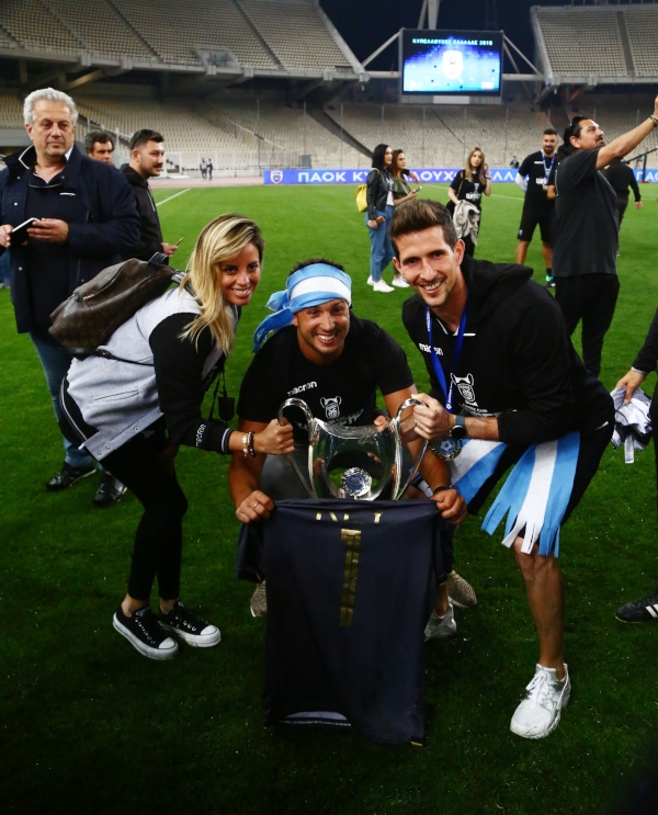 Μετά το τέλος του αποψινού τελικού, οι παίκτες του ΠΑΟΚ πανηγύρισαν μαζί με τις συντρόφους τους, που φωτογραφήθηκαν με το βαρύτιμο τρόπαιο.