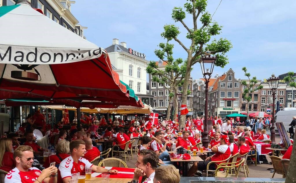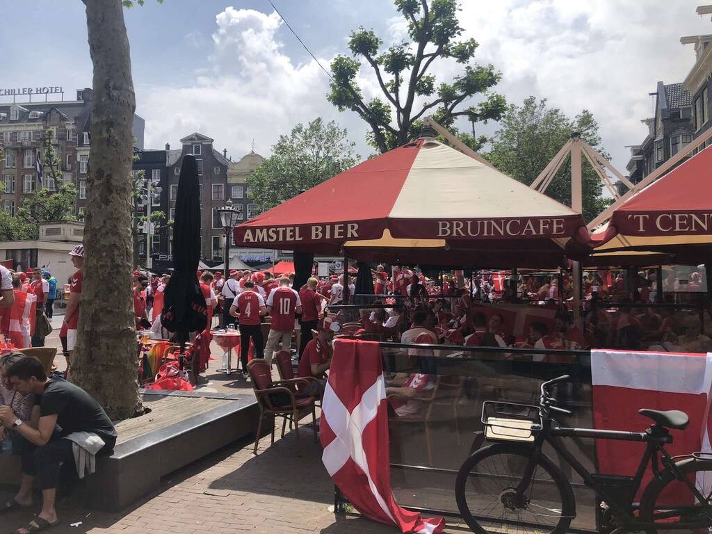 Ένα ατελείωτο πάρτι έχουν στήσει στο Άμστερνταμ οι Δανοί που σε λίγη ώρα θα μεταβούν στη «Γιόχαν Κρόιφ Αρένα» για να παρακολουθήσουν την αναμέτρηση που ανοίγει η αυλαία της φάσης των «16» του Euro 2020 με την Ουαλία. Οι γνωστοί στην ποδοσφαιρική υφήλιο ως ρόλιγκανς πίνουν, χορεύουν και τραγουδούν χωρίς να ξεφύγουν.