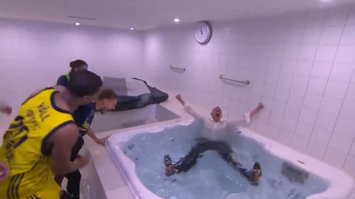 Με το φινάλε του αγώνα, οι παίκτες της Φενέρ πανηγύρισαν με ενθουσιασμό την επιτυχία τους. Το… τελετουργικό των πανηγυρισμών περιλάμβανε ένα εκρηκτικό μπουγέλο στον Σαρούνας Γιασικεβίτσιους, πριν τον ρίξουν πανηγυρικά στο τζακούζι. Ο ίδιος φάνηκε να απολαμβάνει την εμπειρία, με χαμόγελο ικανοποίησης.