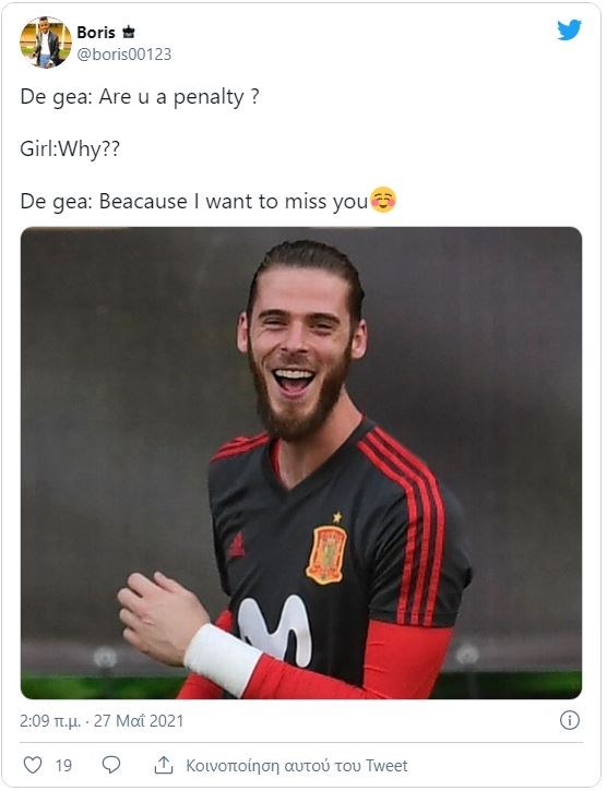 Μοιραίος παίκτης για τη Μάντσεστερ Γιουνάιτεντ στον τελικό του Europa League στάθηκε ο Νταβίντε Ντε Χέα, ο οποίος αστόχησε στο 11ο πέναλτι και η ομάδα του έχασε το τρόπαιο, με τη Βιγιαρεάλ να αναδεικνύεται η νικήτρια του αγώνα και η τροπαιούχος. Ο Ντε Χέα δεν έπιασε κανένα από το πέναλτι που του εκτέλεσαν ενώ ο ίδιος ο Ισπανός τερματοφύλακας αστόχησε στο πιο κρίσιμο πέναλτι για την ομάδα του. Έτσι, το twitter τον τρολάρει με μουσική υπόκρουση τον Τιτανικό και τον καθηγητή του Casa de Papel.