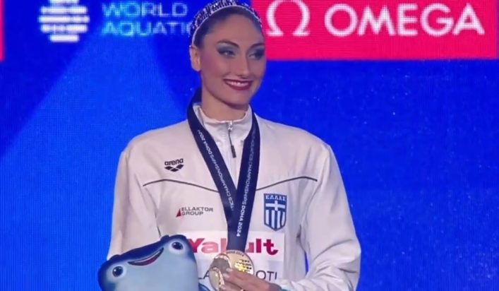 Μετά το χρυσό στο τεχνικό πρόγραμμα του σόλο, το περασμένο Σάββατο (3/2), η Ελληνίδα πρωταθλήτρια της καλλιτεχνικής κολύμβησης συγκέντρωσε 253.2833 βαθμούς και ανέβηκε στο δεύτερο σκαλί του βάθρου στο ελεύθερο πρόγραμμα, φτάνοντας συνολικά τα τέσσερα παγκόσμια μετάλλια στην καριέρα της.