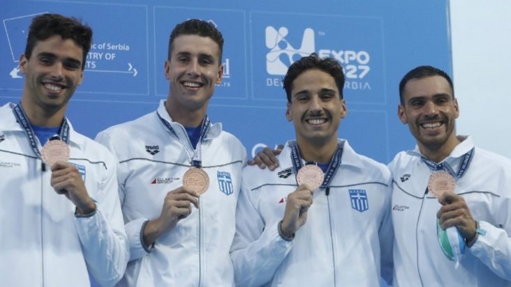 Την τρίτη θέση κατέκτησε η Ελλάδα στα 4Χ100μ. ελεύθερο ανδρών, φτάνοντας τα οκτώ μετάλλια στο Ευρωπαϊκό Πρωτάθλημα κολύμβησης του Βελιγραδίου.