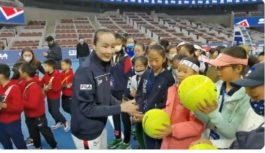 Video shot by my colleague Cui Meng at the National Tennis Center showing Peng Shuai signing signature on large-sized tennis balls at the opening ceremony of Junior Tennis Challenger Final, a way of inspiring more kids to play tennis as hobby and may also as career pic.twitter.com/Sbyj5V5a7Y