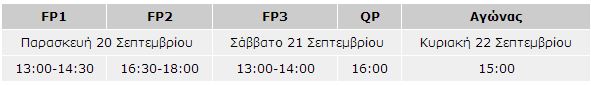Ο αγώνας της Σιγκαπούρης διεξάγεται νύχτα, οπότε για την Ευρώπη οι ώρες είναι πιο κοντά στις συνηθισμένες για τα 3ήμερα της F1.