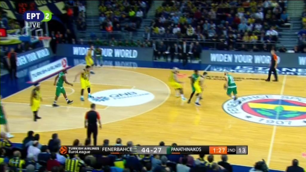 Η Φενερμπαχτσέ κυριάρχησε στο πρώτο ημίχρονο της αναμέτρησης με τον Παναθηναϊκό, όπως αποδεικνύει και η διαφορά των 16 πόντων. Πρώτος σκόρερ της ελληνικής ομάδας ο Σίνγκλετον με 13 πόντους.