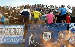 Αγριο ξύλο χθες στις εξέδρες του γηπέδου της Δόξας Βύρωνα που φιλοξενούσε το Αιγάλεω, με τους 300 περίπου οπαδούς των δύο ομάδων να τα σπάνε κανονικά και το ματς να μην τελειώνει φυσικά ποτέ.