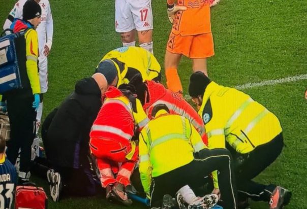 Τρόμος στο «Marcantonio Bentegodi», καθώς ο Μόις Κιν της Φιορεντίνα, έπεσε στο έδαφος μόλις μερικές στιγμές αφού είχε δεχτεί χτύπημα στο κεφάλι και είχε επιστρέψει στο γήπεδο.
