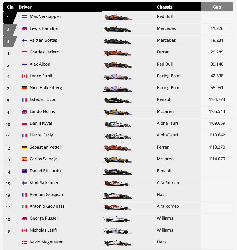 Είναι η πρώτη φορά από την αρχή της σεζόν του 2020 που ηττήθηκε η Mercedes, αλλά ο Χάμιλτον διατηρεί το προβάδισμα στην κούρσα του πρωταθλήματος, μπροστά από τους Φερστάπεν και Βάλτερι Μπότας (Mercedes), ο οποίος τερμάτισε στην 3η θέση στον αγώνα.