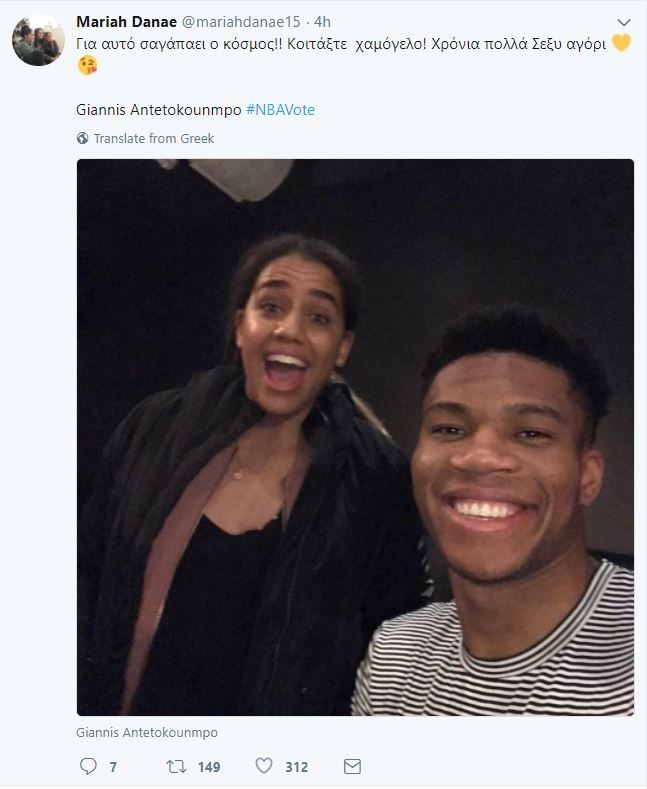 Με ένα τρυφερό μήνυμα που ανέβασε στον προσωπικό της λογαριασμό στο Twitter θέλησε να ευχηθεί στον Γιάννη Αντετοκούνμπο, η σύντροφος του.