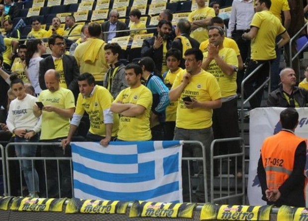 Ακόμα και ελληνική σημαία σήκωσαν οι φίλοι της Φενέρμπαχτσε στην «Ούλκερ Αρίνα» για να ευχαριστήσουν τον Κώστα Σλούκα για την καταπληκτική εμφάνιση του στον πρώτο αγώνα της προημιτελικής σειράς των πλέι οφ της Ευρωλίγκας κόντρα στην Ρεάλ Μαδρίτης.
