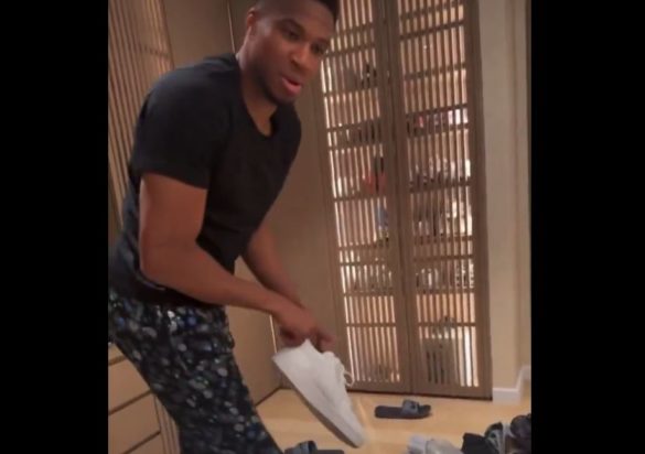 Κατά τη διάρκεια live μετάδοσης από την σύζυγό του, Μαράια, ο Έλληνας σούπερ σταρ των Μιλγουόκι Μπακς βρέθηκε αντιμέτωπος με μια απρόσκλητη επισκέπτρια: μια κατσαρίδα. Με ψυχραιμία – και χιούμορ – προσπάθησε να την εξουδετερώσει χρησιμοποιώντας τα «παραδοσιακά» μέσα: παντόφλα και παπούτσι.