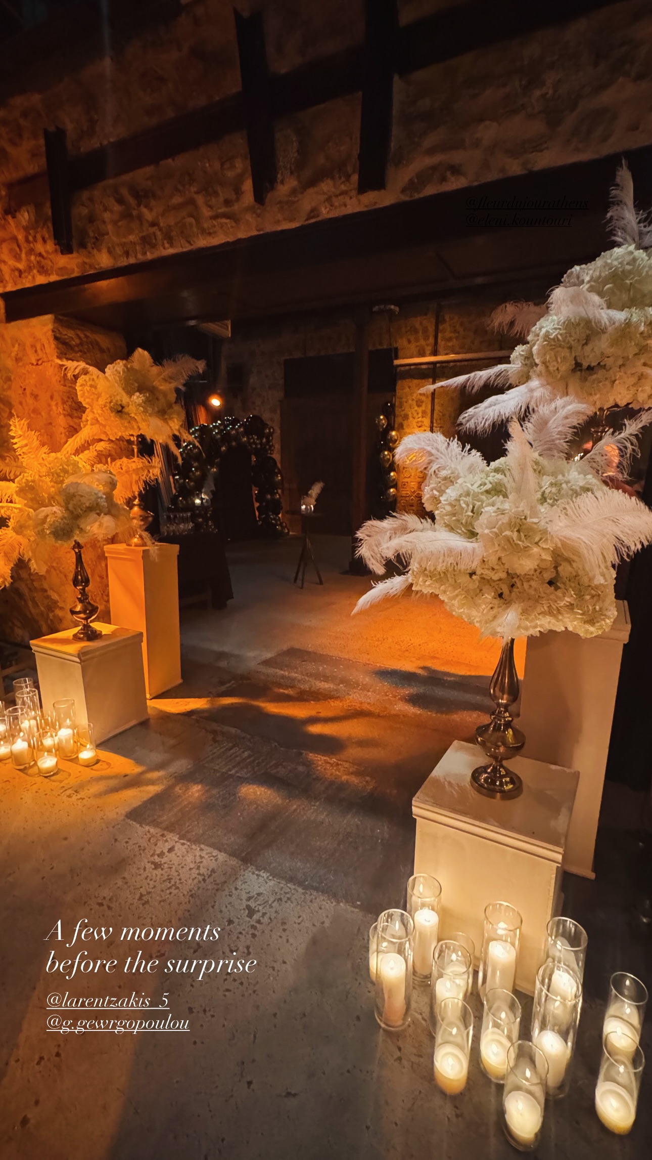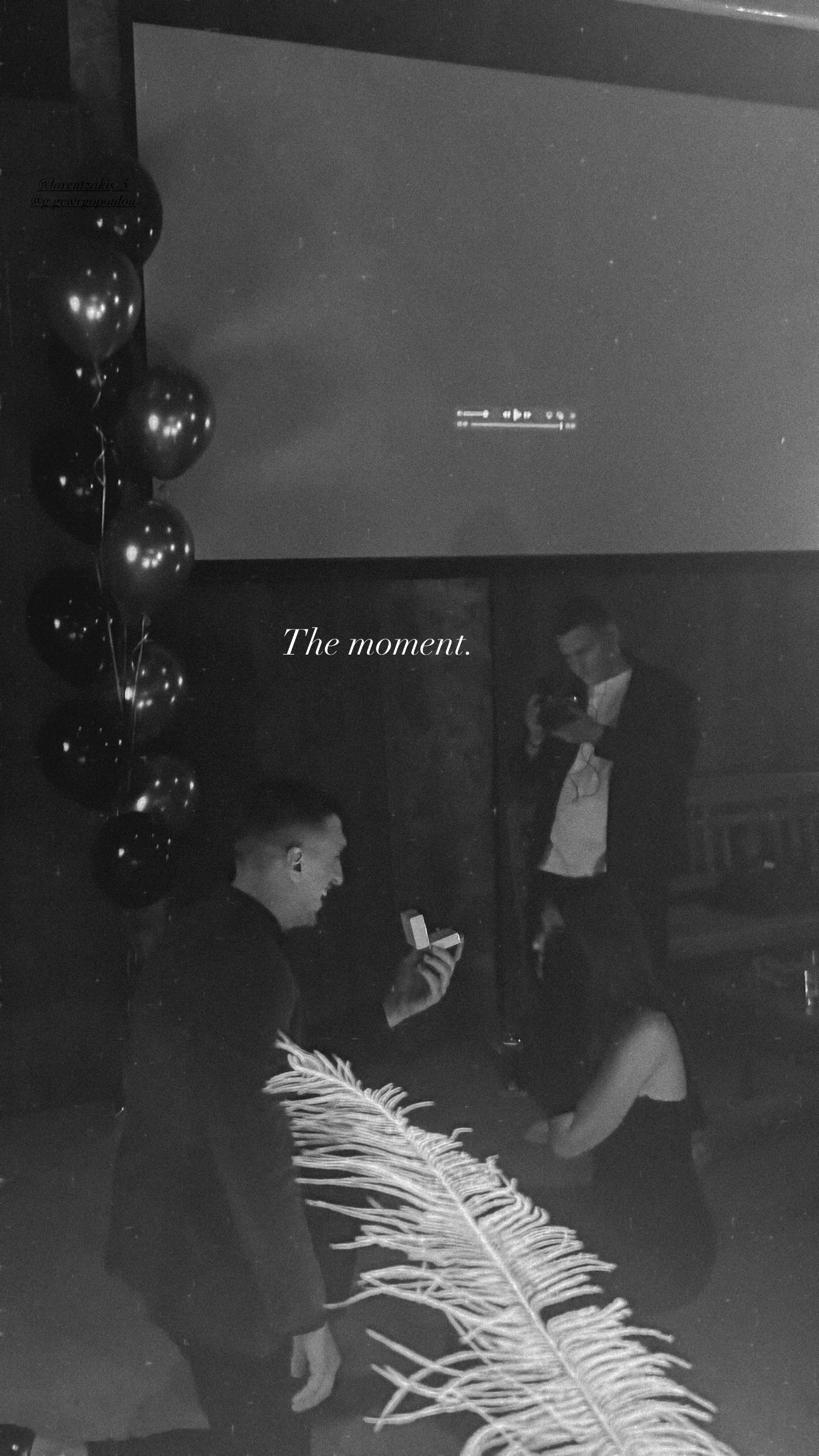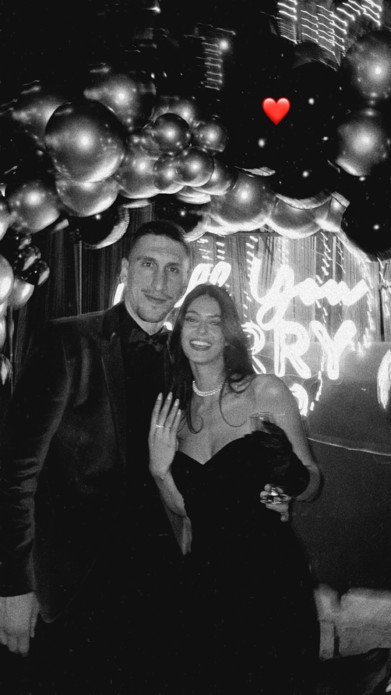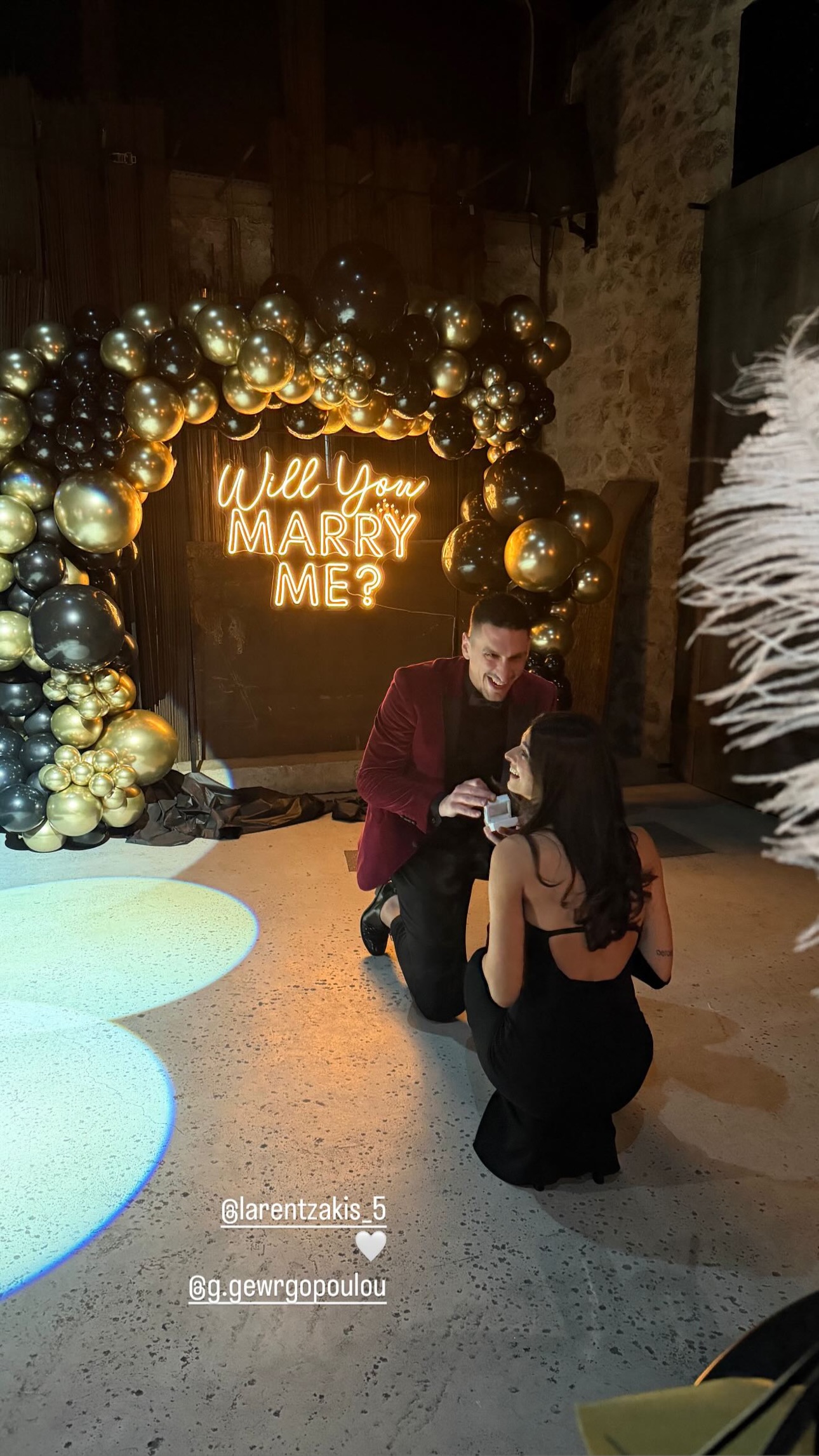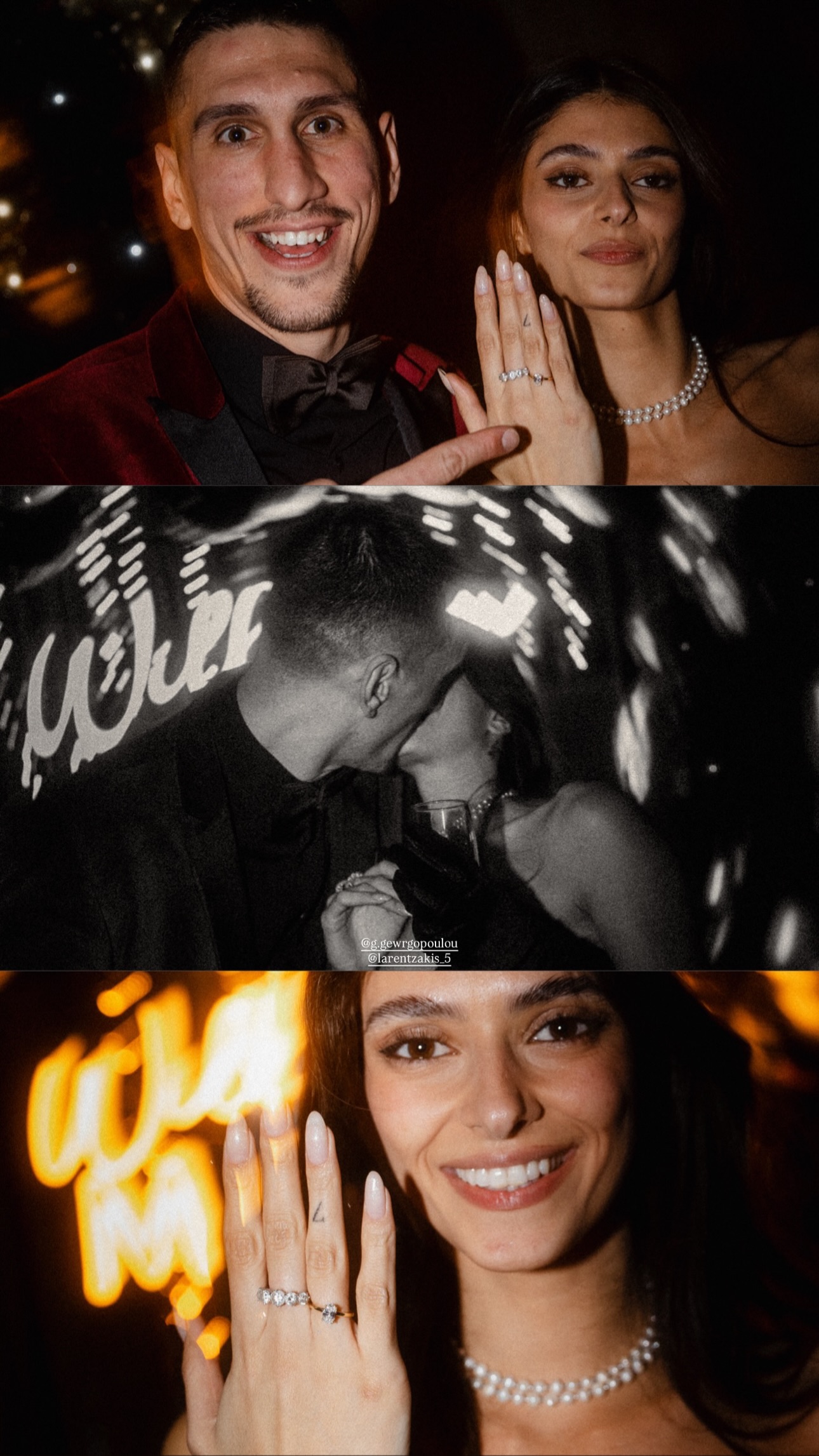 Κατά τη διάρκεια της γιορτής, μέσα σε μια ζεστή και χαρούμενη ατμόσφαιρα, ο διεθνής καλαθοσφαιριστής έσκυψε ξαφνικά μπροστά της και της πρόσφερε το δαχτυλίδι της πρότασης, αιφνιδιάζοντας ευχάριστα τη σύντροφό του.
