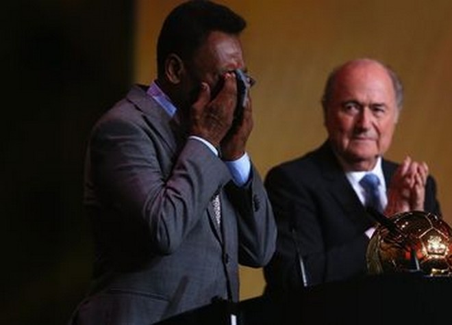 Συγκινημένος εμφανίστηκε ο Πελέ στο γκαλά της FIFA για τη Χρυσή Μπάλα, την οποία κέρδισε ο Κριστιάνο Ρονάλντο .