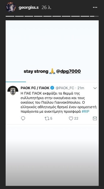 Ο Γιώργος Σαββίδης με ανάρτησή του στο Instagram, αναδημοσιεύοντας την ανακοίνωση της ΠΑΕ ΠΑΟΚ, εξέφρασε τη στήριξή του στον Δημήτρη Γιαννακόπουλο για το θάνατο του πατέρα του, Παύλου.