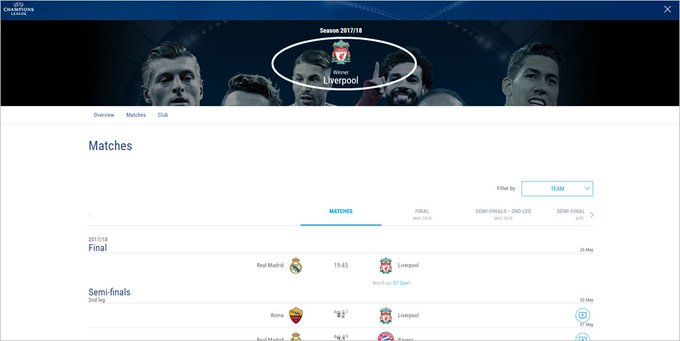 Η UEFA, στην επίσημη σελίδα της για τη διοργάνωση, βιάστηκε να αναδείξει τους “reds” πρωταθλητές Ευρώπης, λίγες ημέρες πριν διεξαχθεί ο τελικός. Προφανώς, πρόκειται για blooper της ευρωπαϊκής ομοσπονδίας, το οποίο διορθώθηκε άμεσα. Τα πειστήρια στην ακόλουθη φωτογραφία: