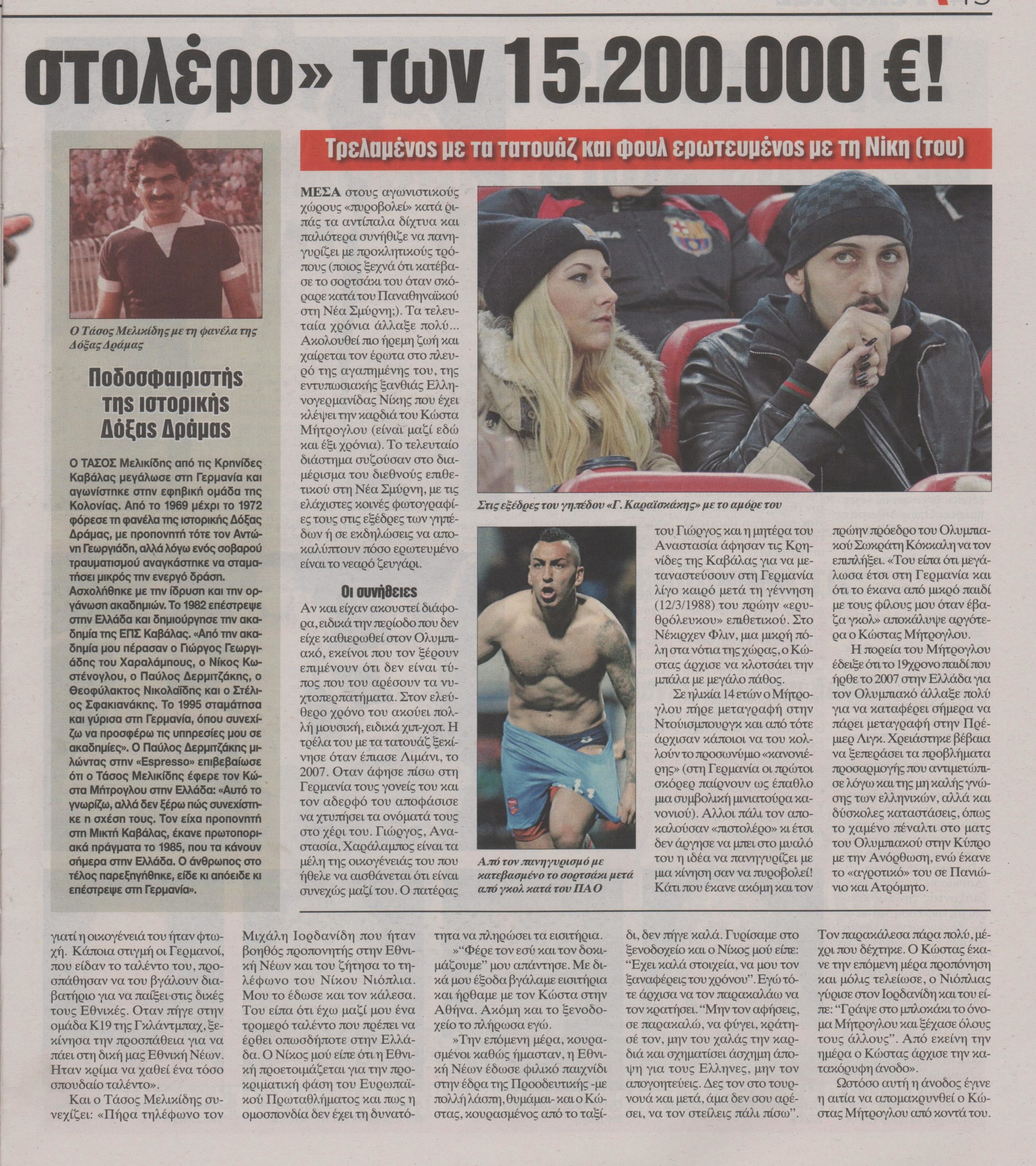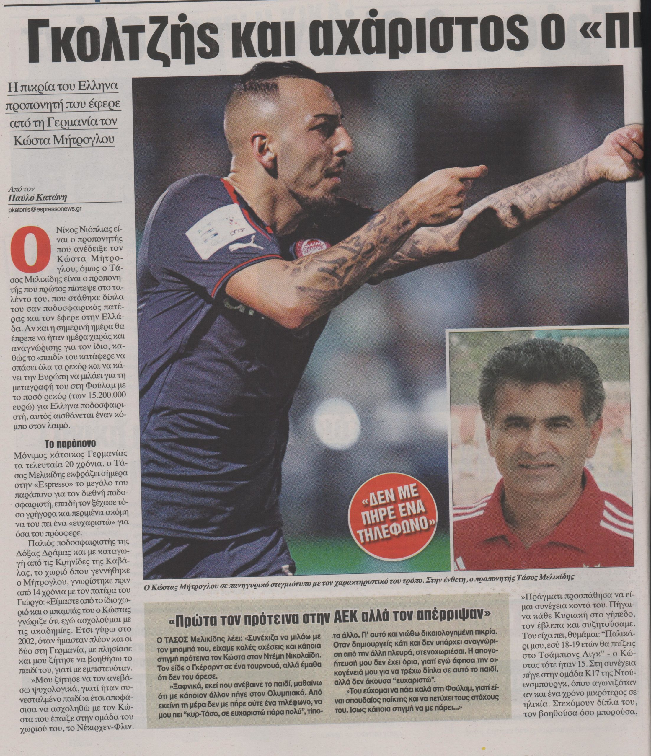Ο άνθρωπος που ανακάλυψε τον Κώστα Μήτρογλου και τον έφερε στην Ελλάδα από την Γερμανία, ο Τάσος Μελικίδης, εκφράζει το μεγάλο του παράπονο για τον διεθνή ποδοσφαιριστή.