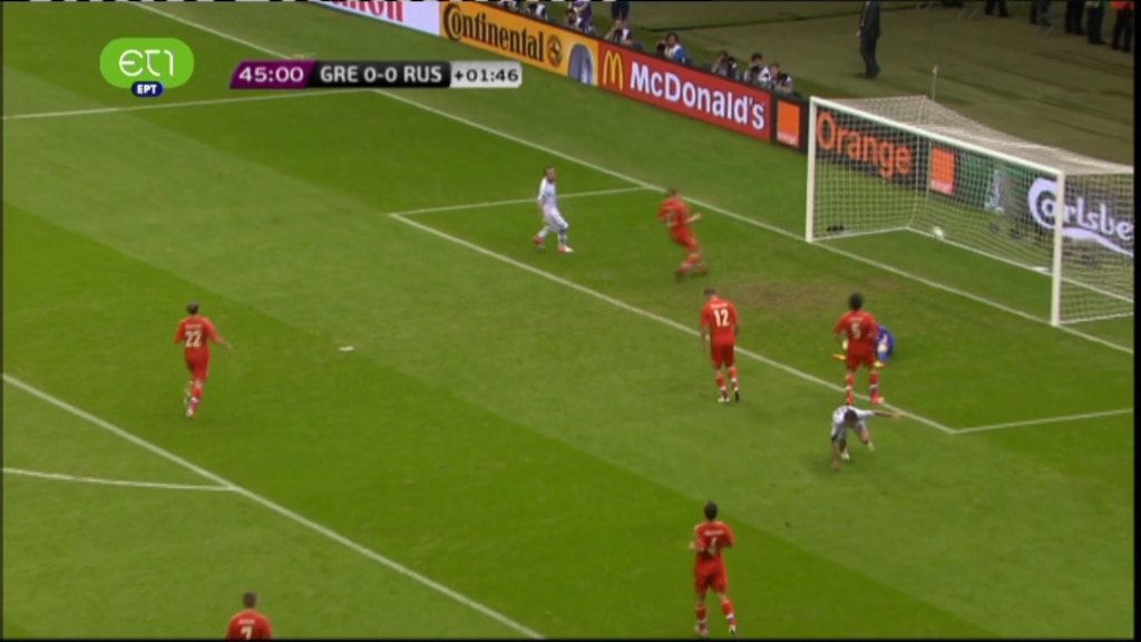 Ο Γιώργος Καραγκούνης, ο “τυπάρας” της εθνικής άνοιξε το σκορ λίγο πριν την εκπνοή του πρώτου ημιχρόνου…