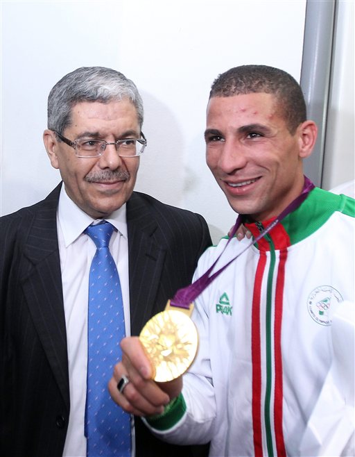 Ο υπουργός Αθλητισμού της Αλγερίας συγχαίρει τον χρυσό Ολυμπιονίκη στα 1.500μ. Ταουφίκ Μακλούφι.
