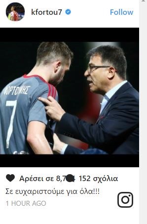 Με τον δικό του τρόπο μέσω του λογαριασμού του στο instagram ο Κώστας Φορτούνης ευχαρίστησε τον Τάκη Λεμονή για την παρουσία του στον πάγκο του Ολυμπιακού.