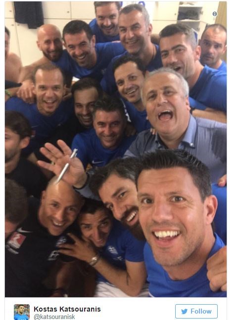 Αυτό αποδεικνύει και η selfie που ανέβασε ο Κώστας Κατσουράνης από τα αποδυτήρια του γηπέδου.