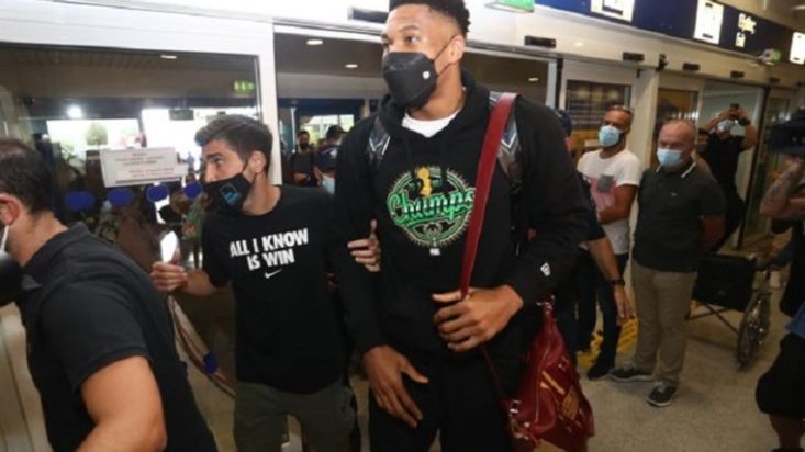 Το είχε προαναγγείλει με ανάρτησή του στο Twitter. “Ερχόμαστε και φέρνουμε και το Κύπελλο”. Λίγο πριν από τις 12.30 σήμερα το μεσημέρι ο Γιάννης Αντετοκούνμπο μαζί με τον αδελφό του Θανάση έφθασαν στην Αθήνα και στο αεροδρόμιο “Ελευθέριος Βενιζέλος” όπου τους επεφύλαξαν θερμή υποδοχή.