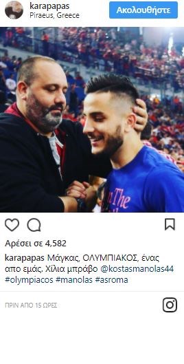 «Μάγκας, ΟΛΥΜΠΙΑΚΟΣ, ένας από εμάς. Χίλια μπράβο», έγραψε ο διευθυντής Επικοινωνίας της ΠΑΕ Ολυμπιακός.