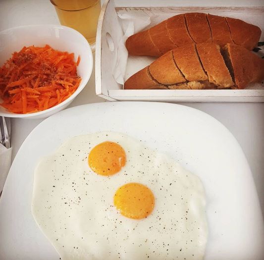 Η χρυσή Ολυμπιονίκης Άννα Κορακάκη, ανέβασε στον λογαριασμό της στο Instagram μια φωτογραφία από το πρωινό της, το οποίο περιλαμβάνει αυγά, τριμμένο καρότο, ψωμί και χυμό.