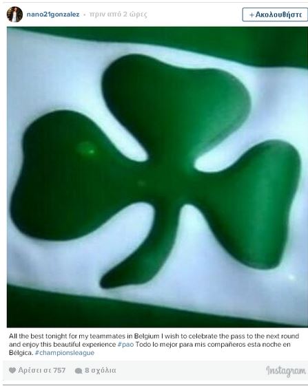 Ο Νάνο δεν κατάφερε να ακολουθήσει την αποστολή του Παναθηναϊκού στο Βέλγιο για τον αγώνα με την Μπριζ, καθώς προέρχεται από τραυματισμό, ωστόσο, μέσω Instagram έστειλε την δική του ευχή στους συμπαίκτες του για την αποψινή ρεβάνς.