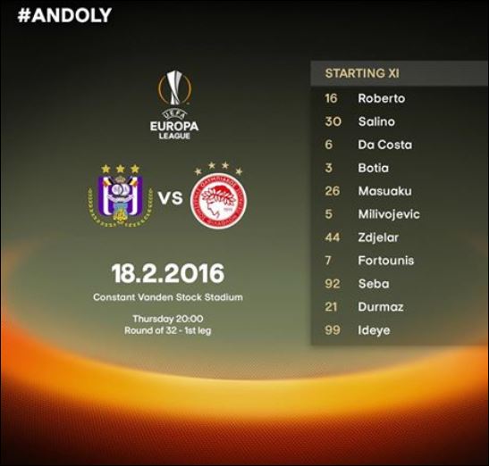 Πριν από λίγο έγινε γνωστή η ενδεκάδα με την οποία θα παραταχθεί ο Ολυμπιακός στον αγώνα με την Άντερλεχτ (20.00) στις Βρυξέλλες για τους “32” του Γιουρόπα Λιγκ. Δείτε ποιους επέλεξε ο Μάρκο Σίλβα.