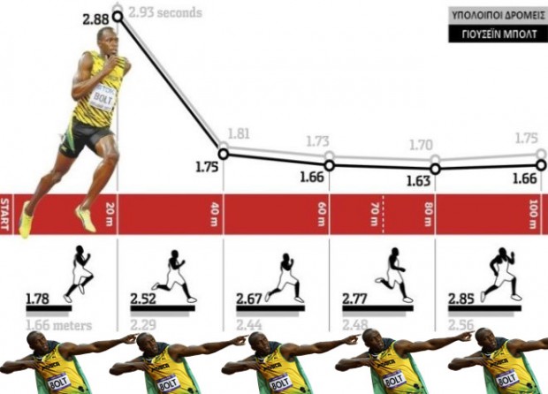Ο Τζαμαϊκανός, κάτοχος του παγκοσμίου ρεκόρ των 100 μέτρων με 9.58’’, επίδοση που πέτυχε στο παγκόσμιο πρωτάθλημα του Βερολίνου το 2009 δεν είναι τυχαία αυτός που είναι.
