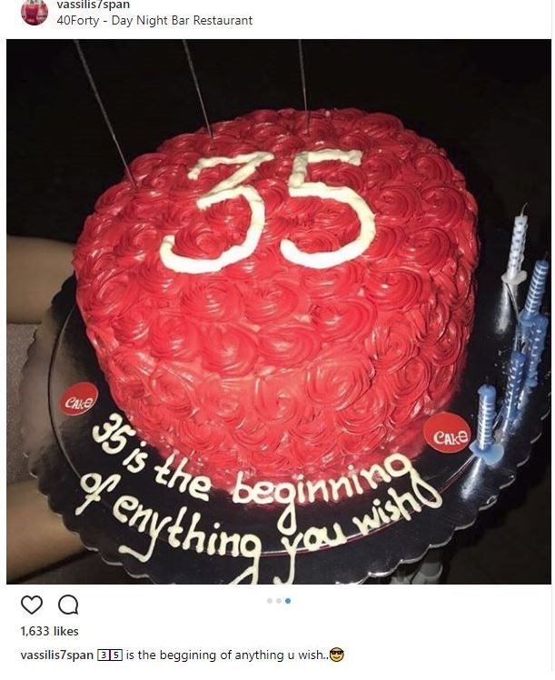 Με την οικογένεια του και μία τούρτα σε ερυθρόλευκα χρώματα γιόρτασε τα 35α γενέθλια του ο σταρ του Ολυμπιακού, Βασίλης Σπανούλης.