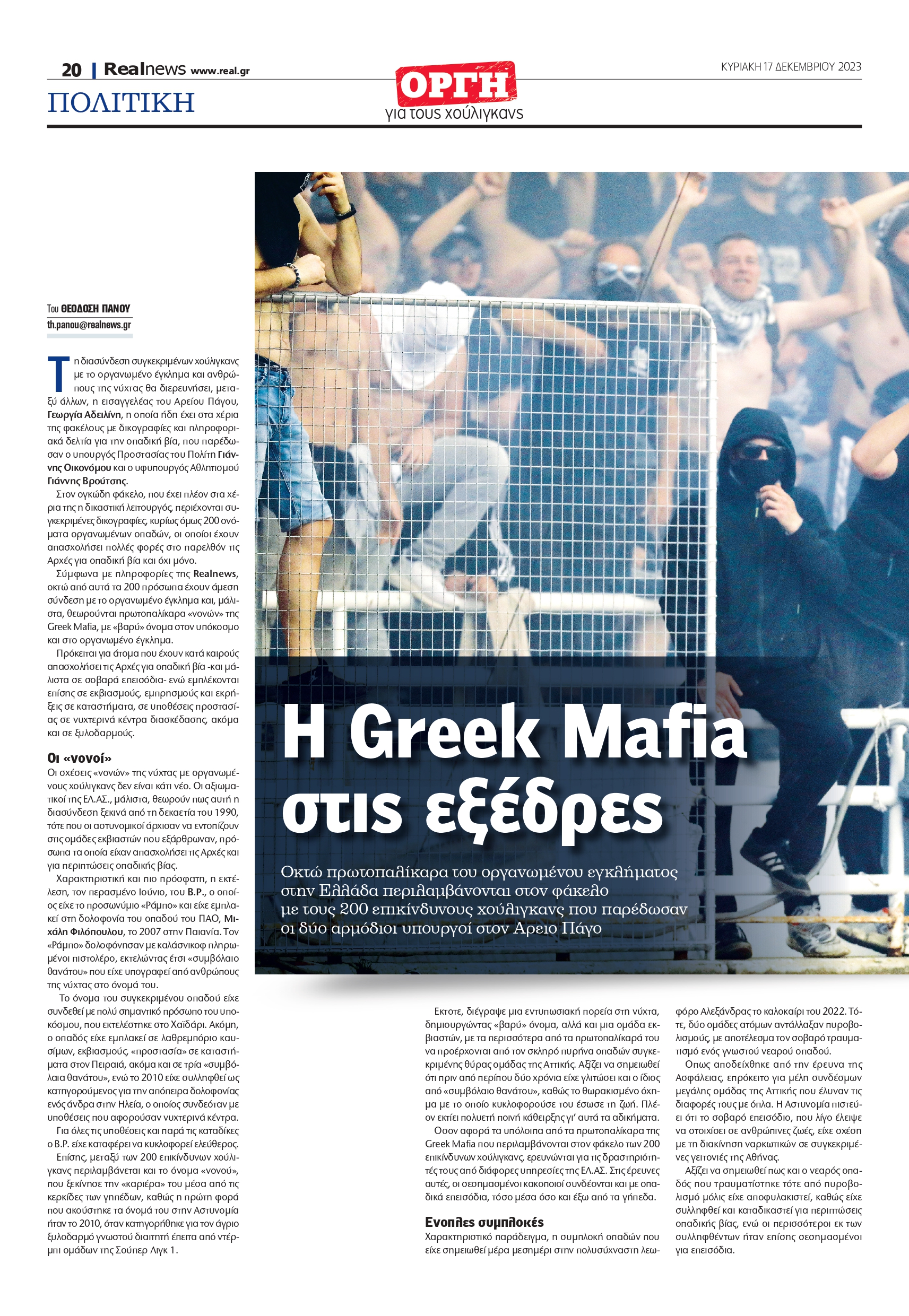 Σύμφωνα με πληροφορίες της Realnews, οκτώ από αυτά τα 200 πρόσωπα έχουν άμεση σύνδεση με το οργανωμένο έγκλημα και, μάλιστα, θεωρούνται πρωτοπαλίκαρα «νονών» της Greek Mafia, με «βαρύ» όνομα στον υπόκοσμο και στο οργανωμένο έγκλημα.