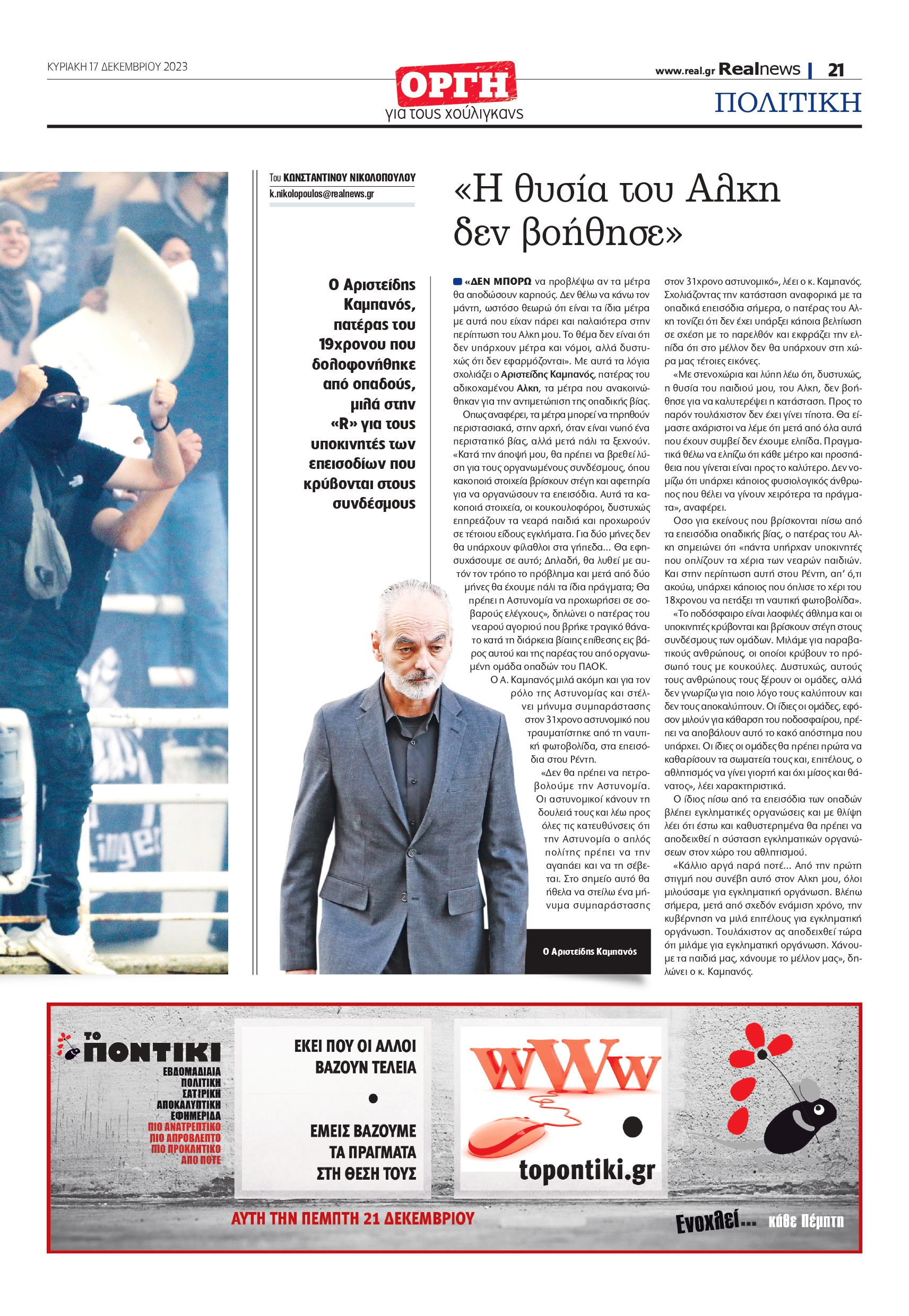 Ο Αριστείδης Καμπανός, πατέρας του 19χρονου που δολοφονήθηκε από οπαδούς, μιλά στην «R» για τους υποκινητές των επεισοδίων που κρύβονται στους συνδέσμους