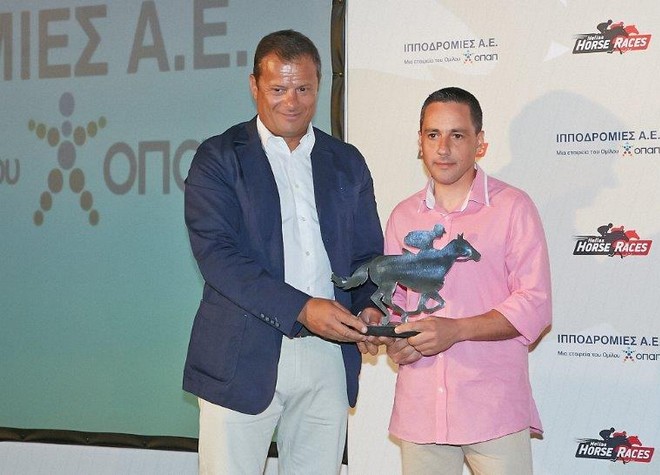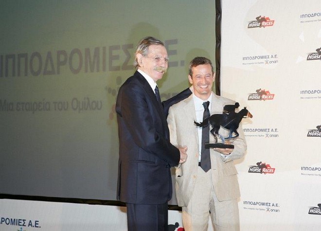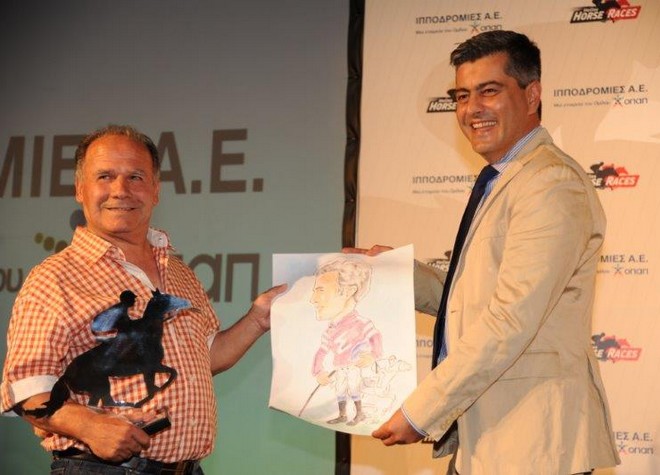 Ο κ. Καμίλ Ζίγκλερ βράβευσε τον αναβάτη Σταμάτη Μπάκο και παρέδωσε το βραβείο στην εκπρόσωπο του Παναγιώτη Λιάκου.