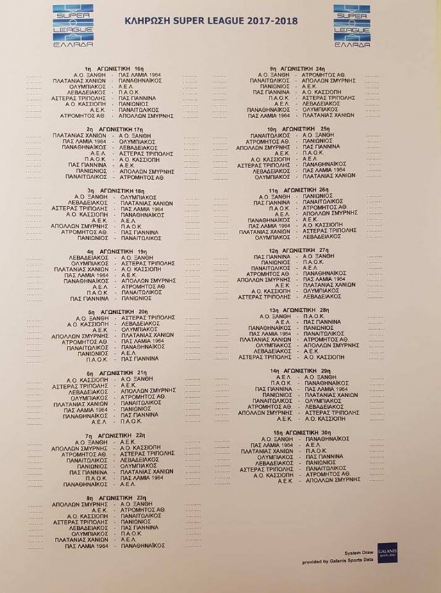 Το πρώτο ντέρμπι της χρονιάς είναι την 5η αγωνιστική με την ΑΕΚ να υποδέχεται τον Ολυμπιακό στο ΟΑΚΑ. Στην 8η “στροφή” του πρωταθλήματος ο πρωταθλητής Ελλάδας υποδέχεται τον ΠΑΟΚ στο στο «Γ. Καραϊσκάκης», ενώ την 9η κληρώθηκε το ντέρμπι «αιωνίων» με γηπεδούχο τον Παναθηναϊκό.