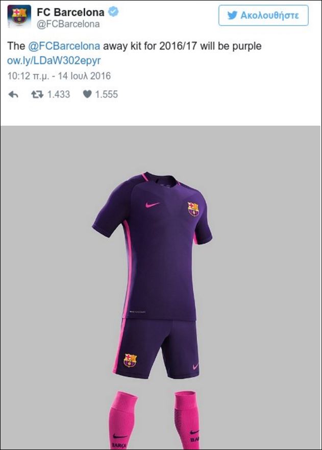 Η Μπαρτσελόνα αποφάσισε να αλλάξει την εμφάνισή της για τους αγώνες που θα διεξάγονται εκτός έδρας.