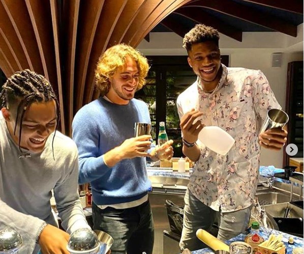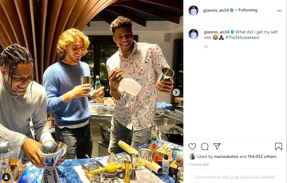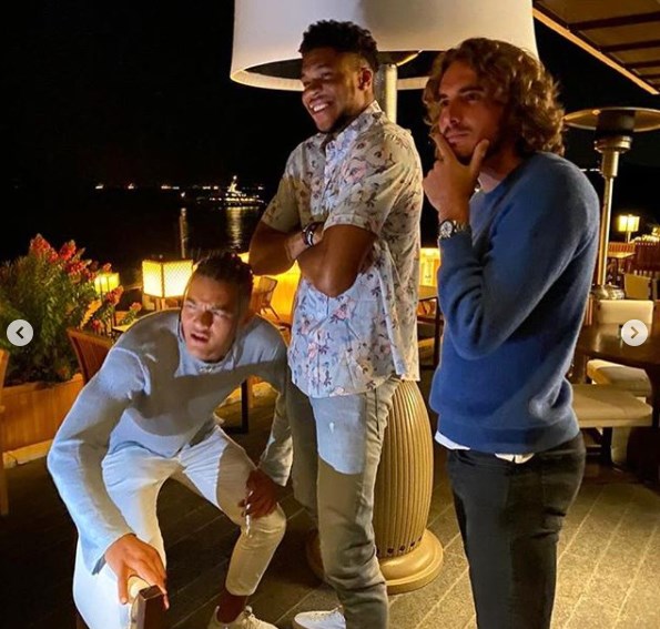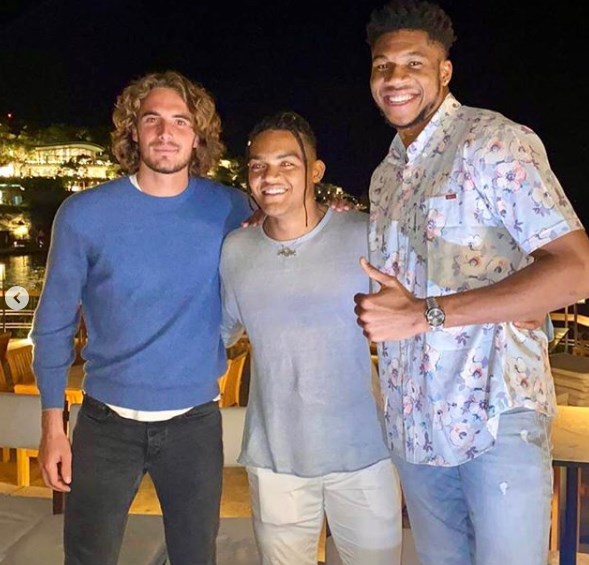 Οι… τρεις σωματοφύλακες έγραψε στον λογαριασμό του στο instagram ο Γιάννης Αντετοκούνμπο για την επική βραδιά που πέρασε μαζί με τον Στέφανο Τσιτσιπά και τον Μανώλη Καραλή. Οι τρεις κορυφαίοι αθλητές διασκέδασαν, έφτιαξαν κοκτέιλ και φυσικά έβγαλαν φωτογραφίες. Σύμφωνα με πληροφορίες του enikos.gr, ο πρωταθλητής του τένις θα μείνει για λίγα 24ωρα στην Ελλάδα για μια μικρή “ανάσα” από τις αγωνιστικές υποχρεώσεις.