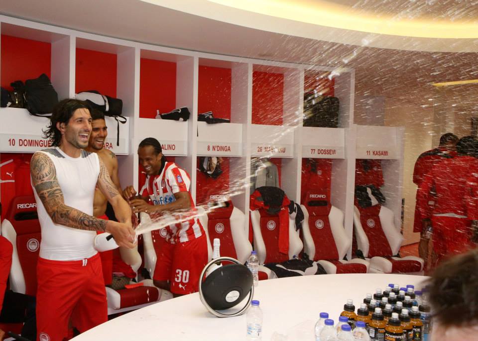 Στα αποδυτήρια του γηπέδου Γεώργιος Καραϊσκάκης μεταφέρθηκαν οι πανηγυρισμοί των παιχτών του Ολυμπιακού για την κατάκτηση του 42ου πρωταθλήματος στην ιστορία του συλλόγου. Οι «ερυθρόλευκοι» το γλέντησαν με μια selfie ενώ πρωταγωνιστής στα πανηγύρια ήταν ο Τσόρι Ντομίνγκεζ που μπουγέλωσε τους συμπαίχτες και τον προπονητή του με μια σαμπάνια, όπως φαίνεται στις φωτογραφίες που ανέβηκαν στην επίσημη σελίδα της ομάδας στο Facebook.