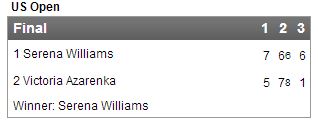 Η Σερένα Ουίλιαμς μετά από δύο ώρες και 45 λεπτά κατέκτησε το US Open με αντίπαλο τη Βικτόρια Αζαρένκα και έτσι έκανε δικό της τον τίτλο.