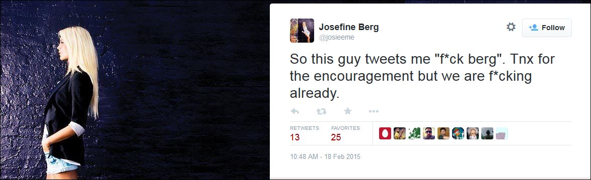 Η Τζόσεφιν ευχαρίστησε τον οπαδό που της έγραψε «f@@@ Berg» επισημαίνοντας πως ήδη απολαμβάνουν την… «ευχή» του.